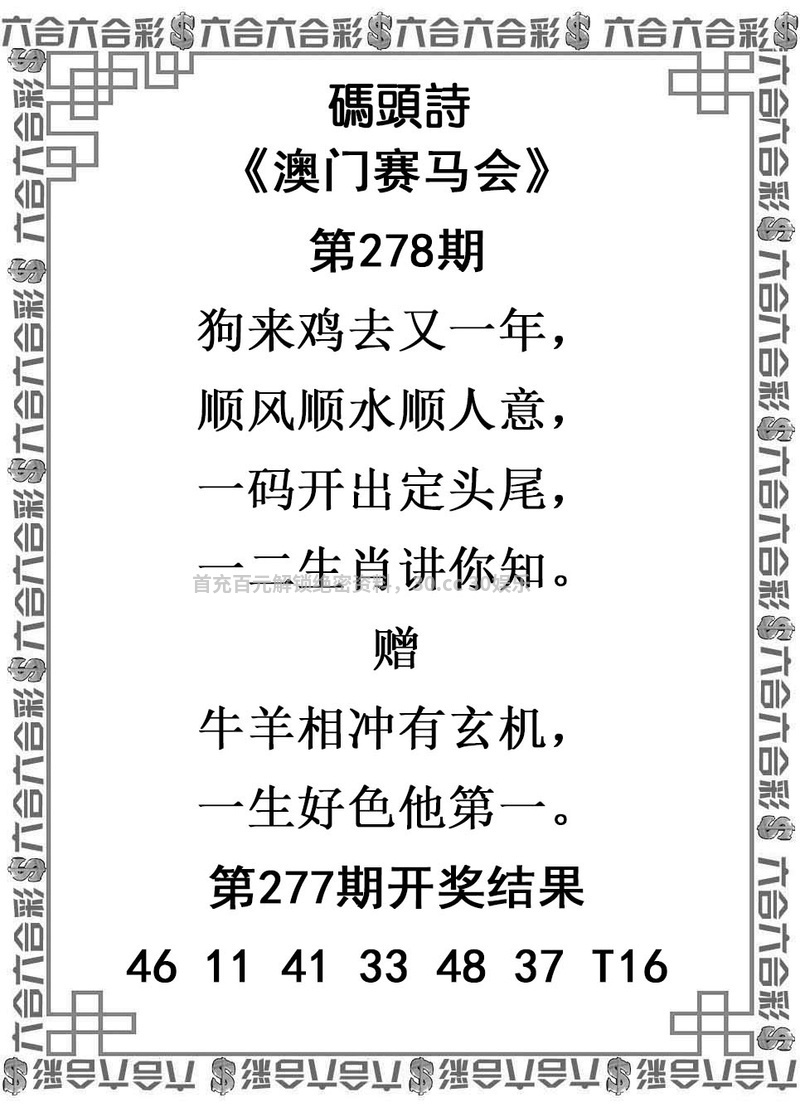278期:⑨肖中特【虎猴牛马龙猪蛇狗羊】开:虎28准 |